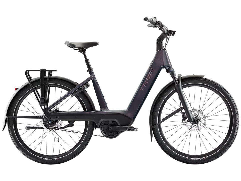 Le Charter+4 Nexus 5 à entraînement à courroie 800 Wh Lowstep est un vélo de ville électrique adaptable. Il convient aux trajets quotidiens, aux sorties de détente de tous les jours et aux courses à réaliser en cours de semaine. L’extrémité avant réglable permet de personnaliser l’ajustement de la position sur le vélo, depuis une position redressée qui donne la priorité au confort jusqu’à une position plus active qui favorise l’efficacité du pédalage. Il est prêt à prendre la route avec un entraînement par courroie Gates CDX avec un moyeu à 5 vitesses internes Shimano Nexus à changement automatique, et un moteur Bosch Performance Line associé à une batterie de 800 Wh pour vos plus grandes aventures. Une fourche télescopique à ressort SR Suntour complète l’ensemble pour votre confort sur les routes les plus cahoteuses.
